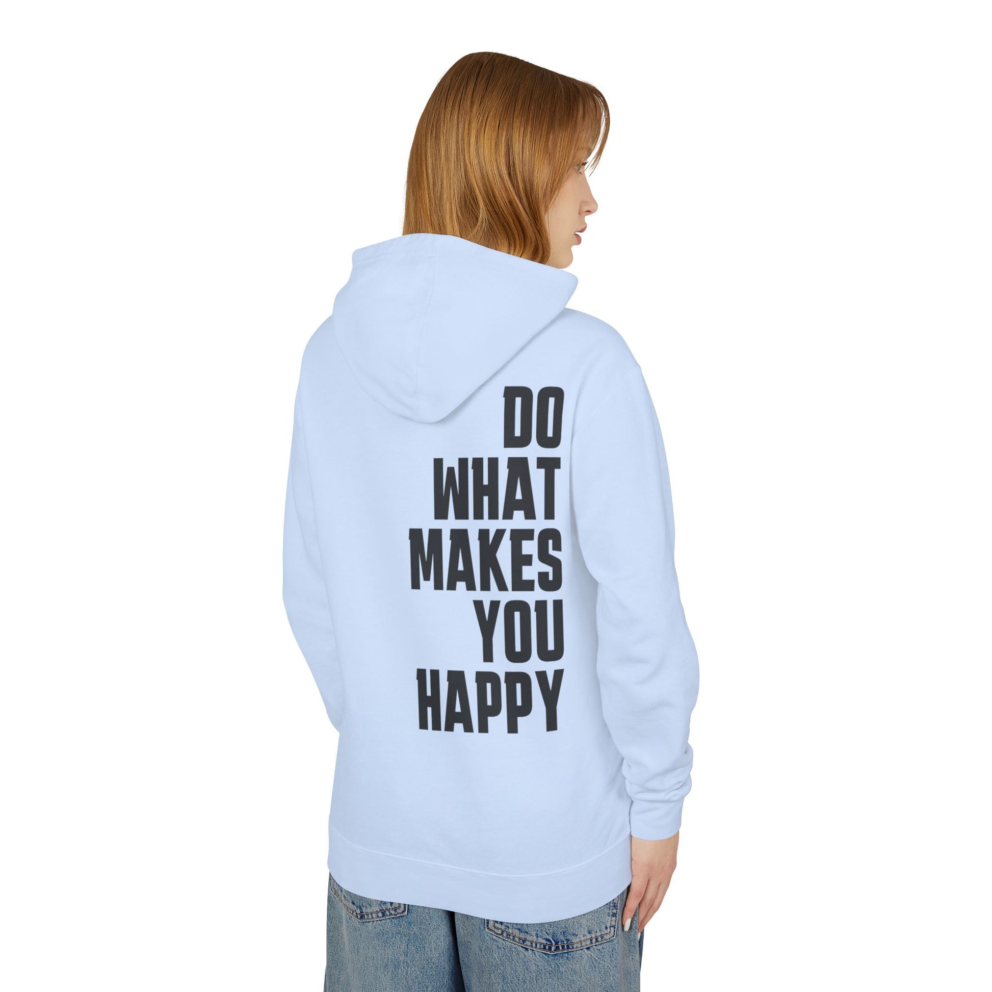 This lightweight hooded sweatshirt carries a simple, uplifting message—Do What Makes You Happy—designed to move with you through slow mornings, quick coffee runs, and evenings when you finally unwind. The soft, ring-spun cotton feels gentle on the skin; the relaxed cut and rolled-forward shoulders give it an easy, lived-in silhouette that won’t constrain your day. The jersey-lined hood and natural flatcord add a quiet, handcrafted touch, while the breathable light-weight fabric keeps you comfortable in layered looks or worn alone on cool afternoons. Thoughtfully made with sustainable cotton practices and low-impact dyes, it’s for people who value intention in both what they wear and how it’s made.