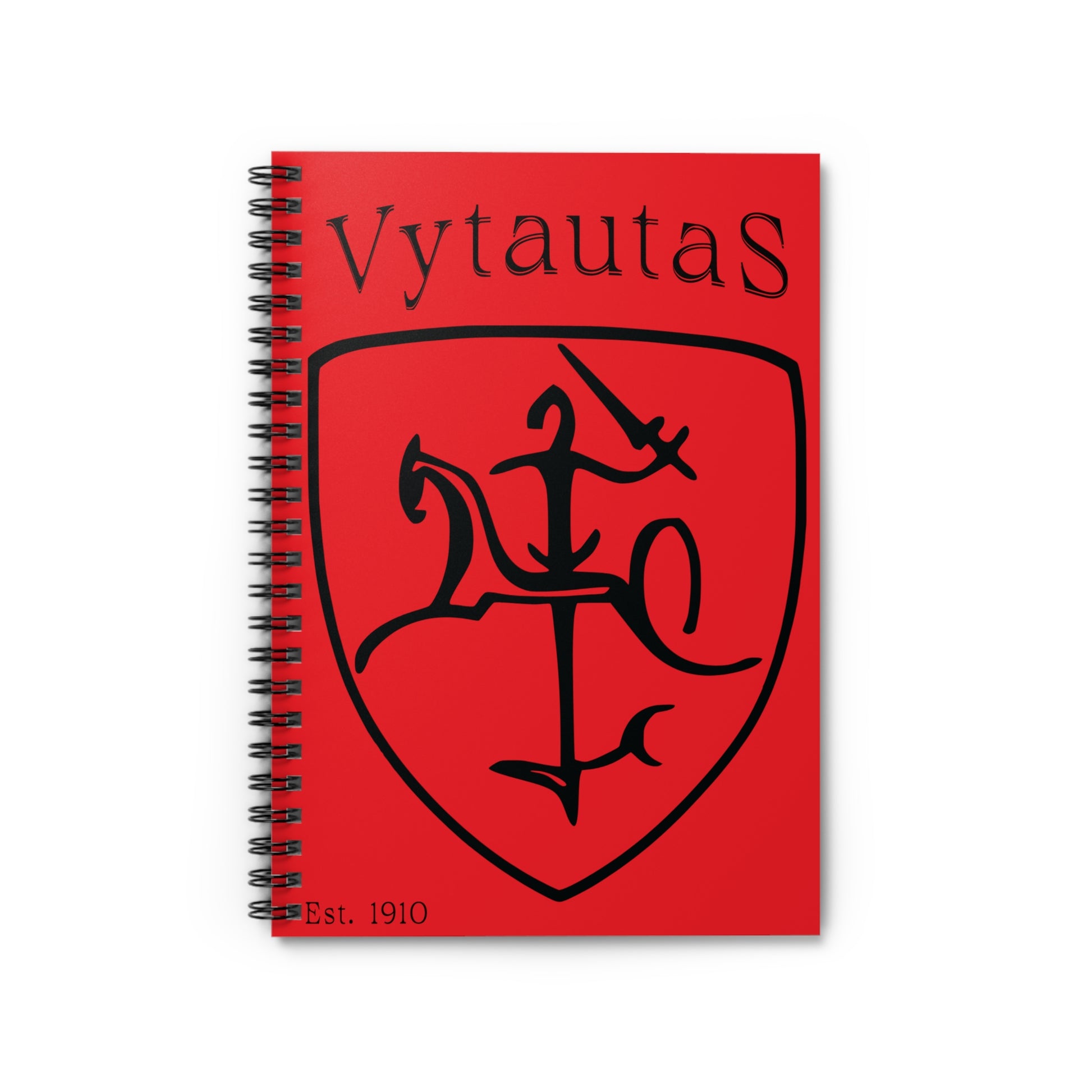 Vytautas Shield Spiral Notebook 2 — New Black on Red Journal (Est. 1910)