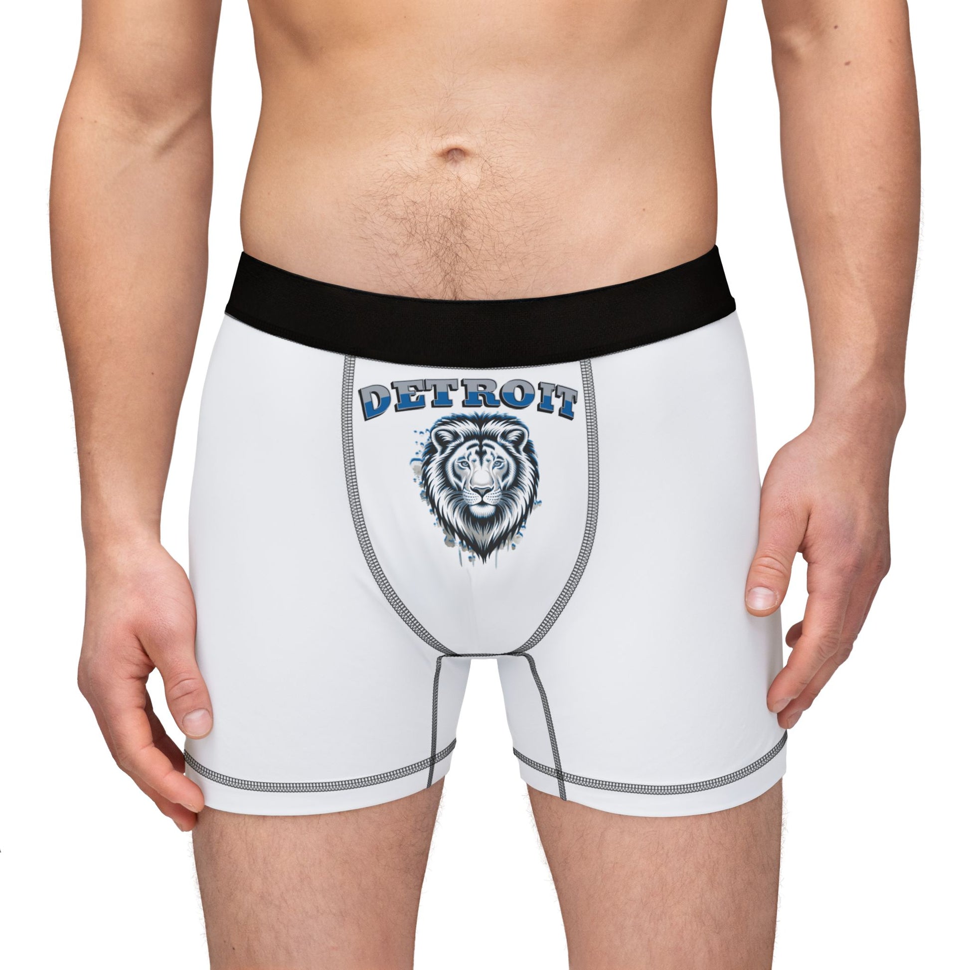 White Detroit Lions Men's Boxers - AOP, Funny Gift for Sports Fans, Comfort Wear, Game Day Apparel, Unique Men's Underwear